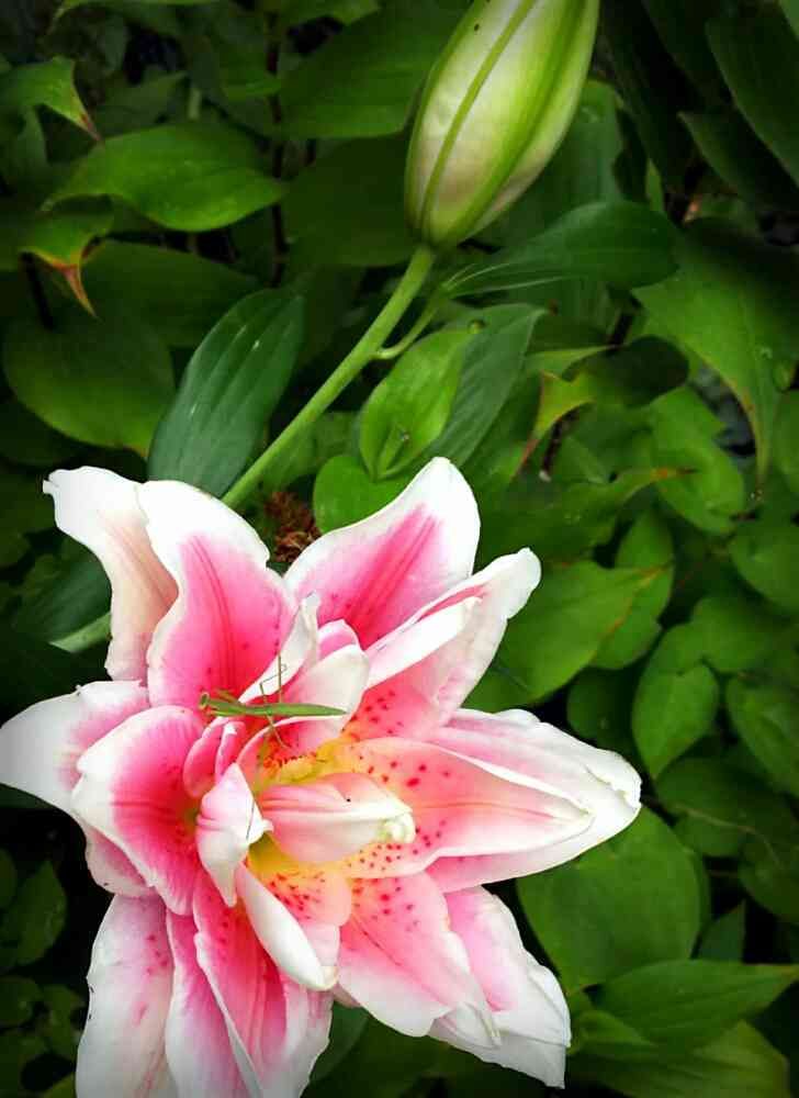 チッコイカマキリ(笑) 余程 居心地が良いのか 未だに ユリに居座っております😆💦