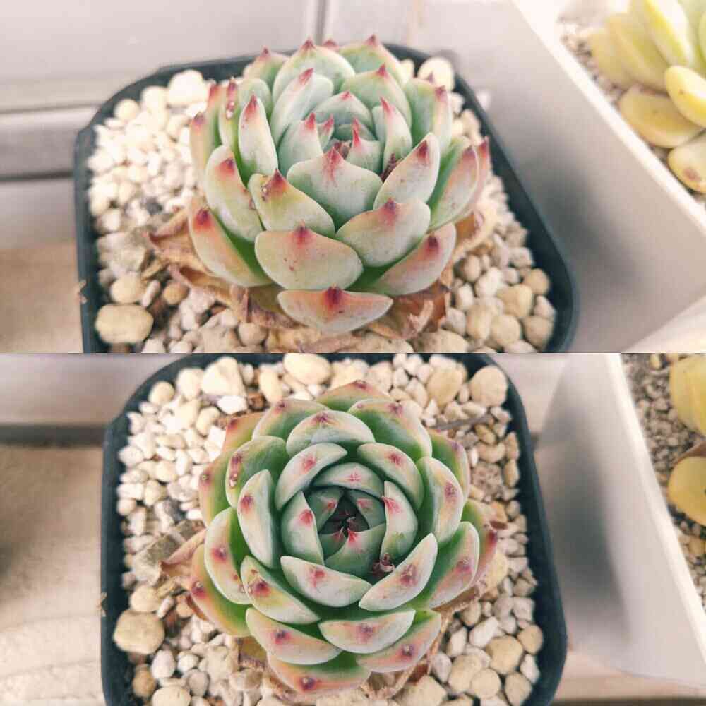 チワワエンシスです。ウーム😔。全然開かないなぁ。多肉がパッカーンと開くのはいつなんだろう?夏かな?