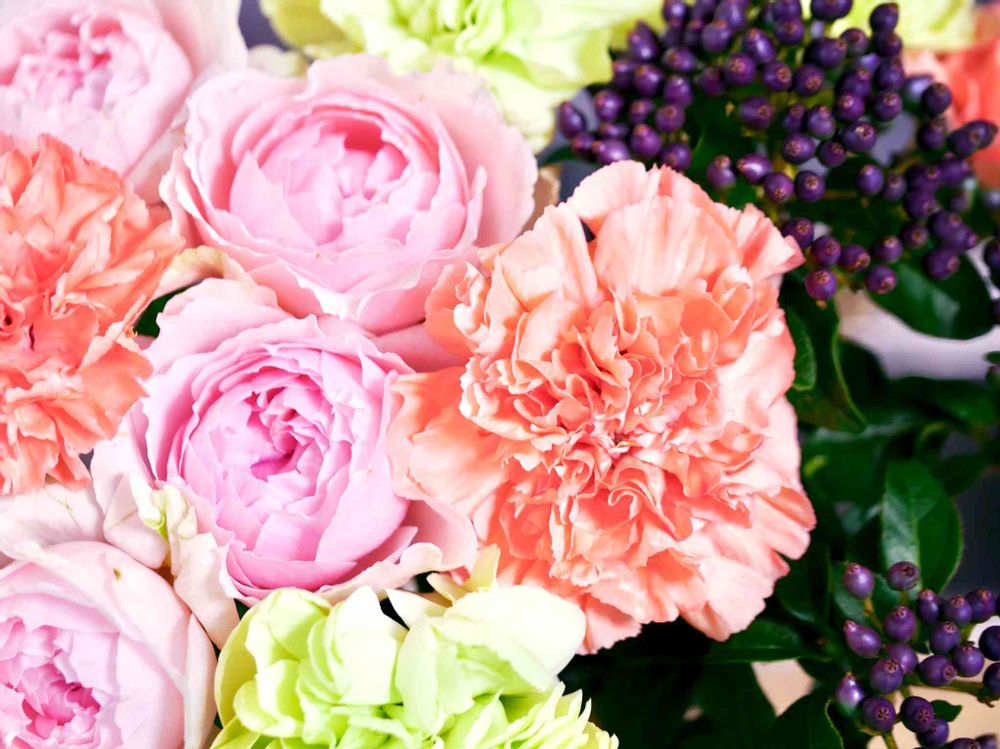 カーネーションとバラをパステルカラーで組み合わせてみました。