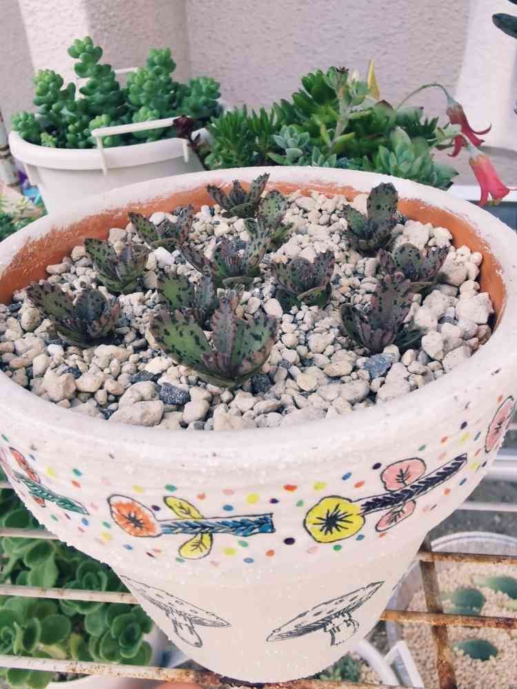 ペンキを塗り好きなマステと消しゴムはんこでリメイク鉢を