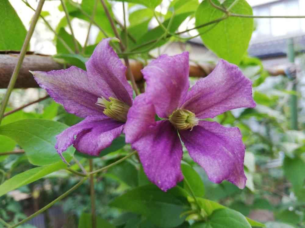 地面から20cm程に切り戻したクレマチス、ジュエリーローズにまた花が咲き始めていました。