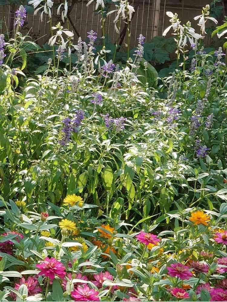 ギボウシ(ホスタ),ジニア(百日草),サルビア ファリナセア(ブルーサルビア)の投稿画像