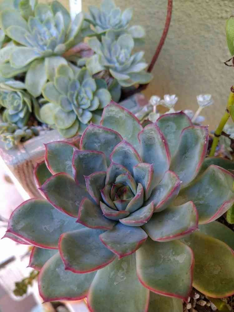赤い縁取りの多肉さん、猛暑でも頑張ってるね〜❣️