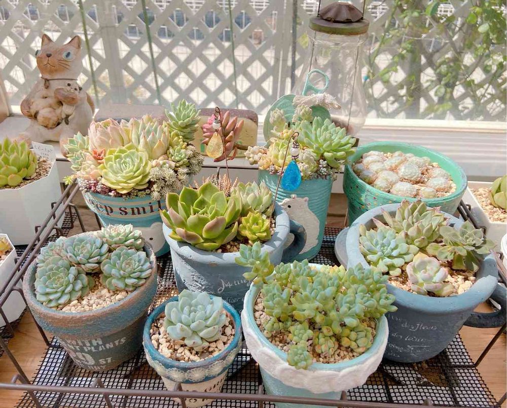 ベランダは50%斜光ネットで焦げてる子はいないけど、扇風機がないのでお水をあげれてもチョロチョロなのでシワシワです💦