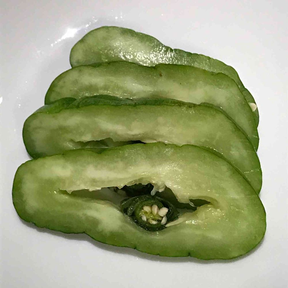 青唐辛子の辛みと、青じその香りが、はぐら瓜に浸透してます。