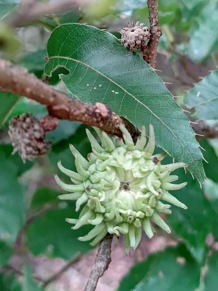 ドングリにも色々あるけれど、これはクヌギという樹木の実で、これが熟すと茶色の大きなクヌギドングリにもなります♪