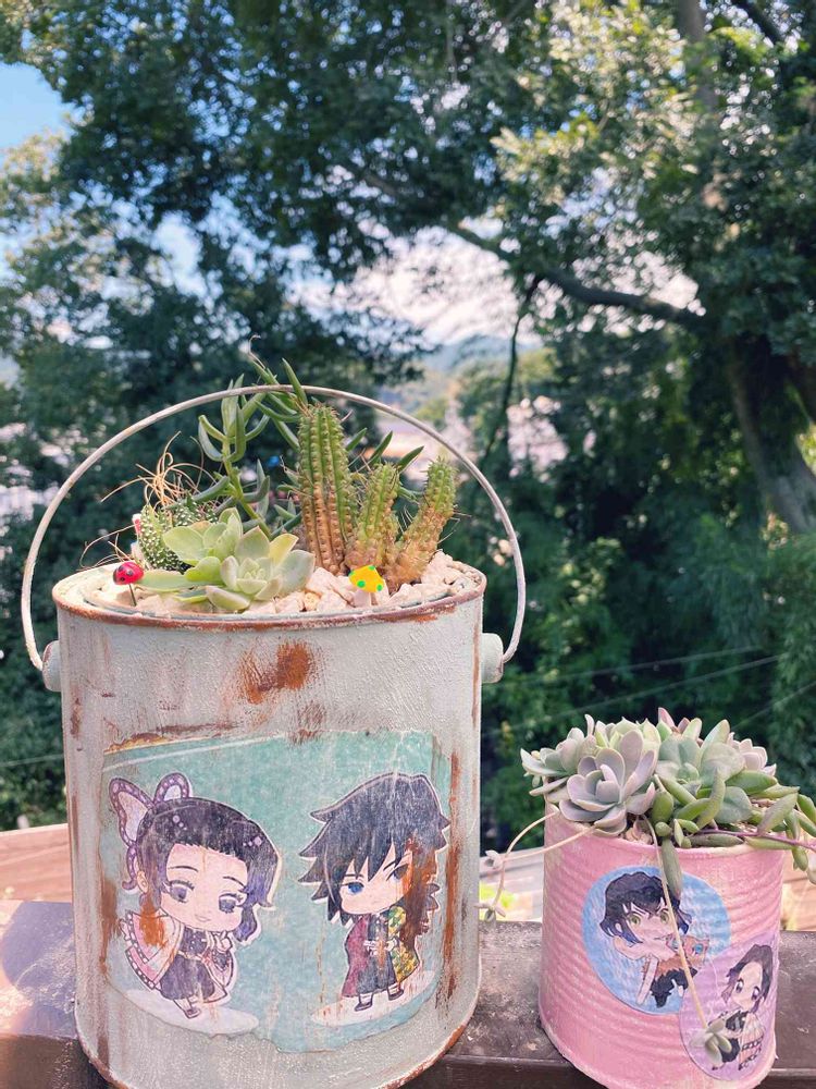 お友達の娘ちゃんとリメ缶と寄せ植え〜〜。