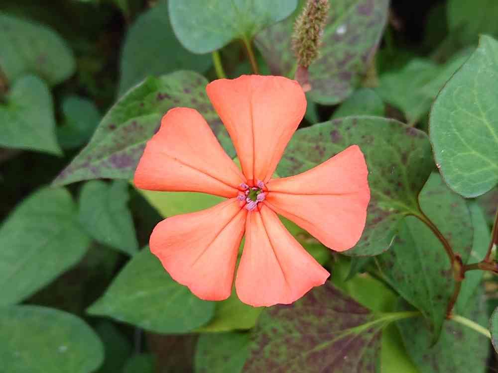 ドクダミの茂みから鮮やかなオレンジが現れました。