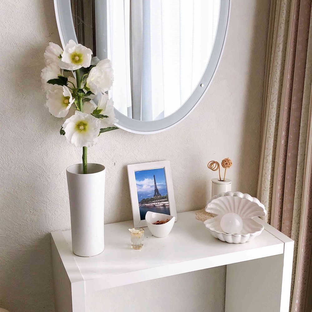 壁掛け仏壇「鏡壇ミラリエ」に今日(8/18)の誕生花の「白いタチアオイ(立葵)」を飾ってみました。
