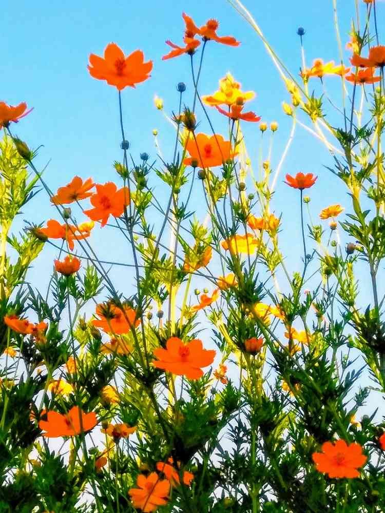 青空にコスモスが映えて綺麗ですね✨🌿💛