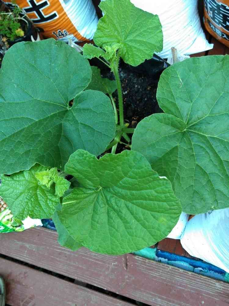 あえて親蔓を伸ばしている苗は本葉が7〜8枚になりました。