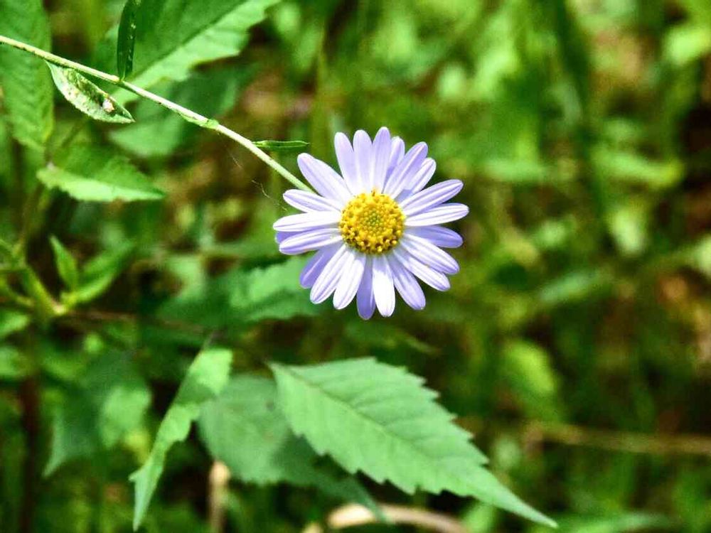 中間部で分枝しますが、下の葉は尖った欠刻状の鋸歯がある菊そのもの、分枝より上の葉は、小さい単葉ですから😆