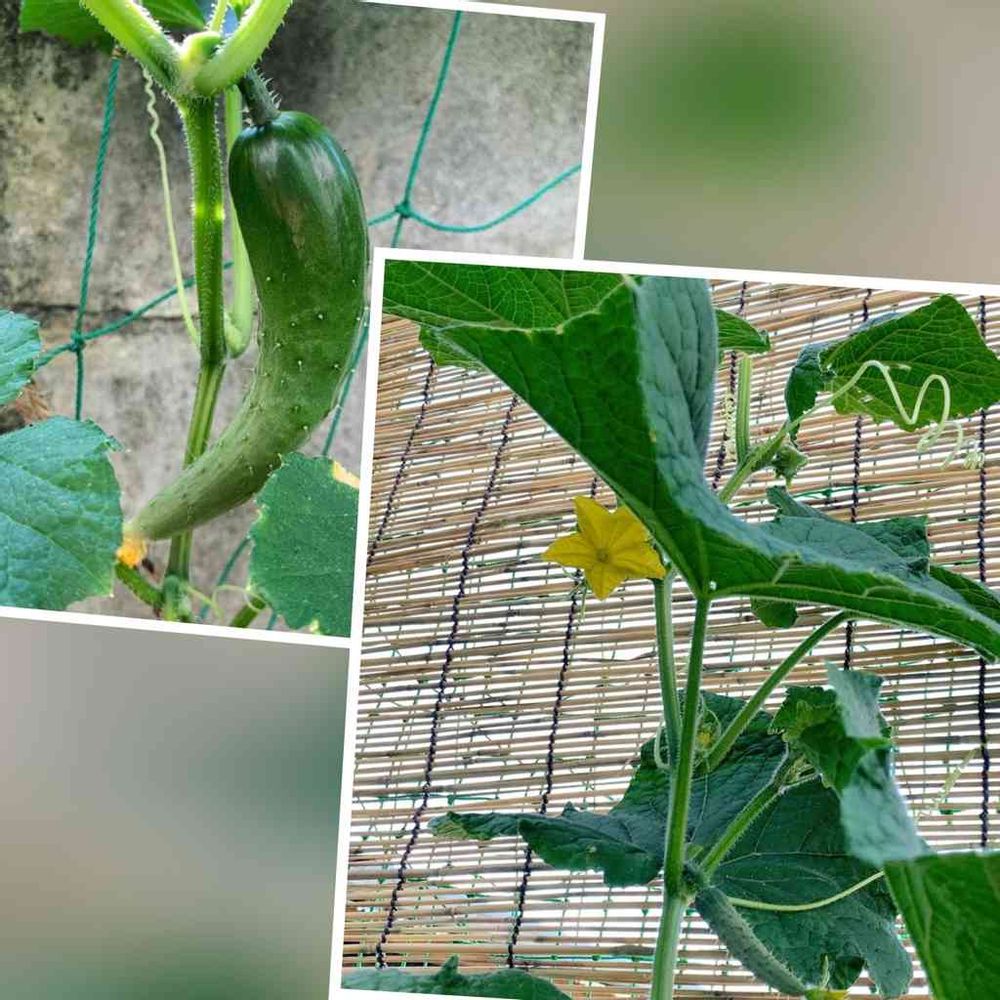 きゅうり、そろそろ終わるんかなと思ってたけど、摘芯してたおかげで2本ともまた花と実がつき始めました✨わーい🙌