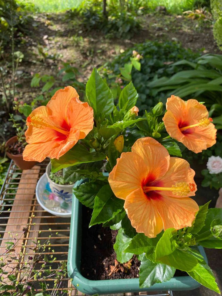 今日はハイビスカスが3個同時に咲いています🧡🧡🧡😆🙌