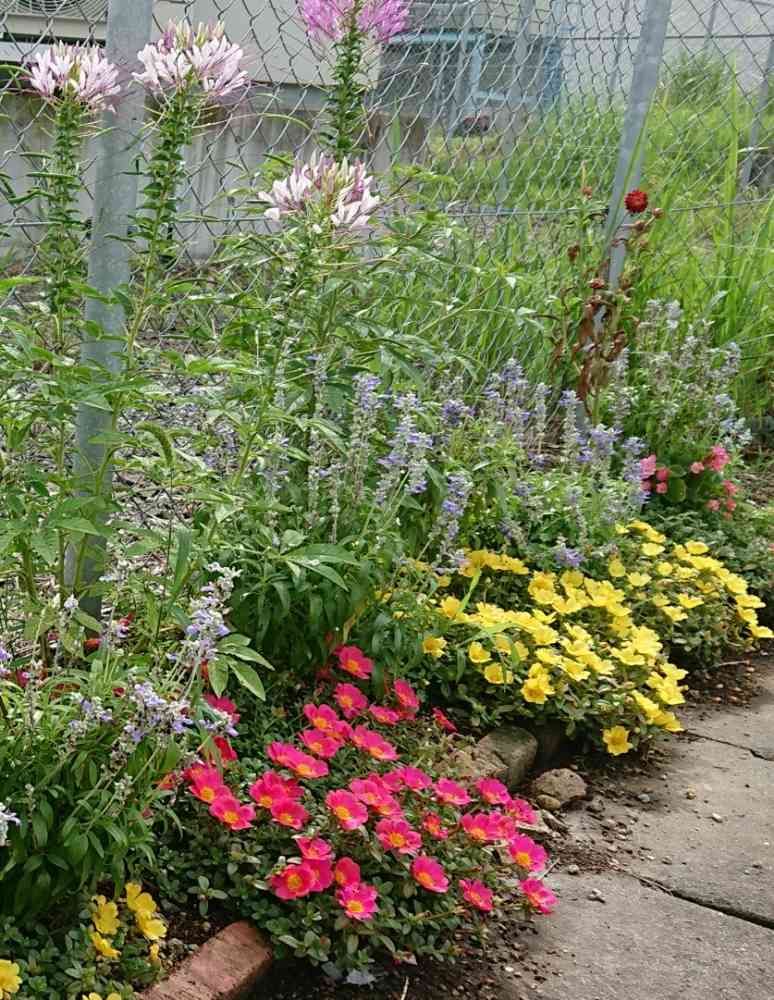 クレオメ、サリーファン、ポーチュラカ,会社の花壇の投稿画像