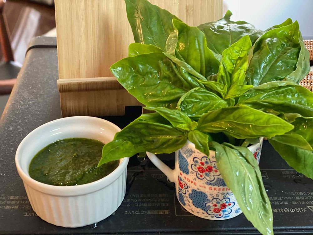 バジル…産地直送野菜(大山旬の野菜) の中にバジルが入っていたので、ジェノベーゼソースにしました。