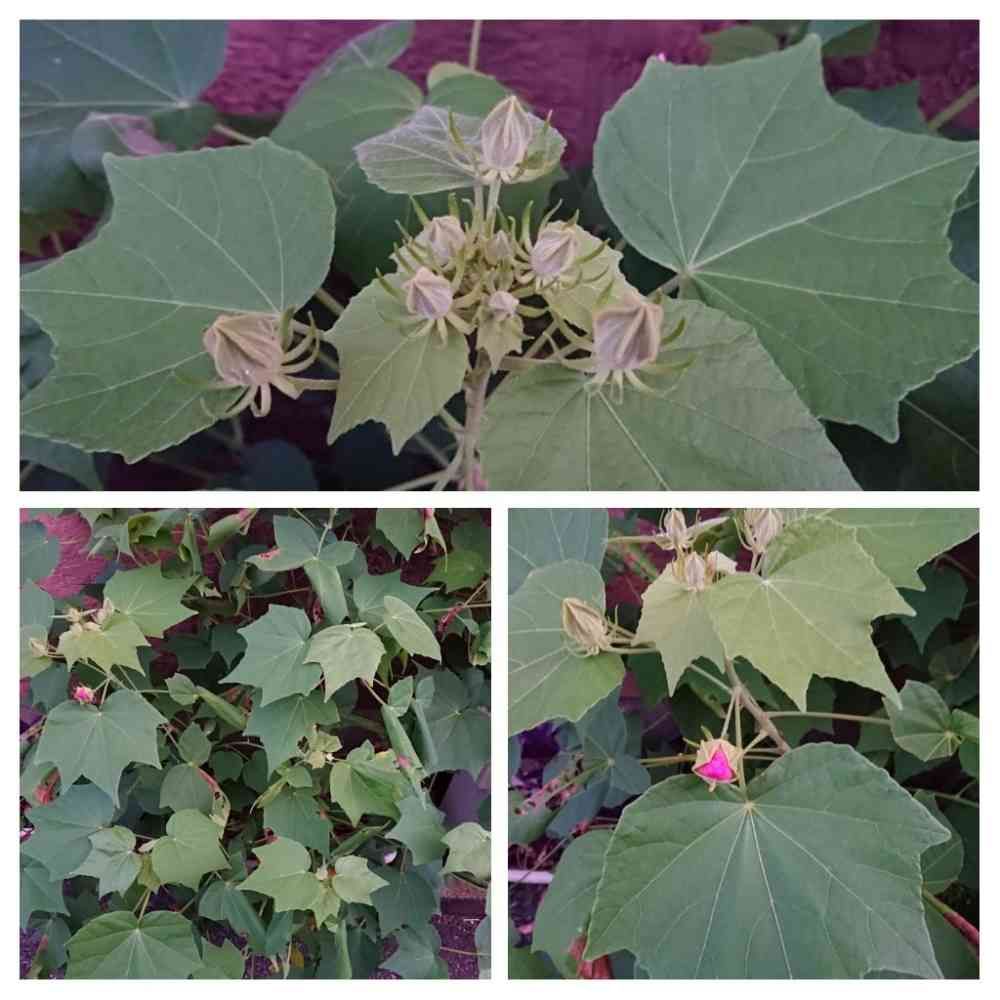 フヨウの葉は、さこさんが投稿された画像のように花と同じくらい大きくて五角形みたいな形をしていますが、アメリカフヨウの葉は卵形です😊