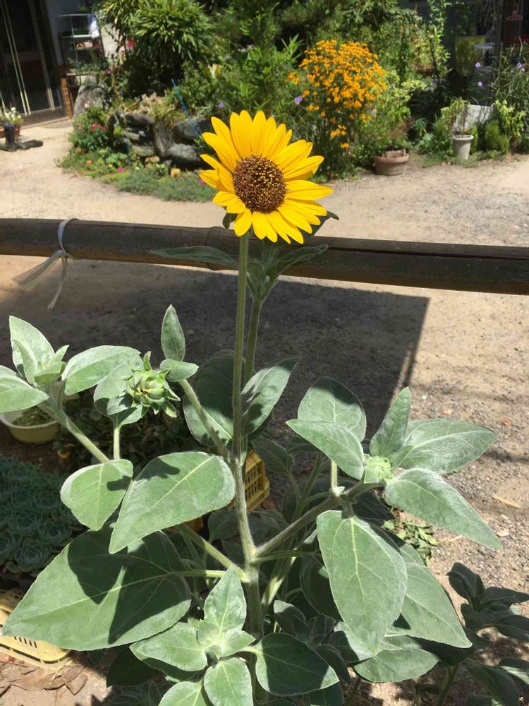 花はしっかりひまわりで葉っぱはビロードのようで手触りが良い🤗けど花が小さい😅