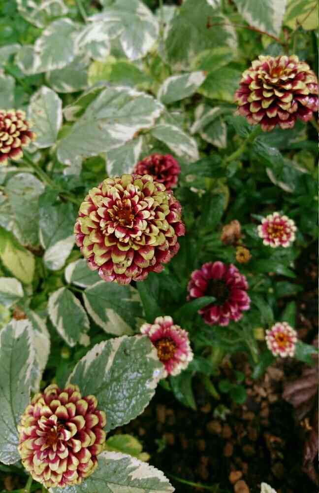 広い庭,エゴポディウム バリエガータ,ジニア アズテックバーガンディの投稿画像