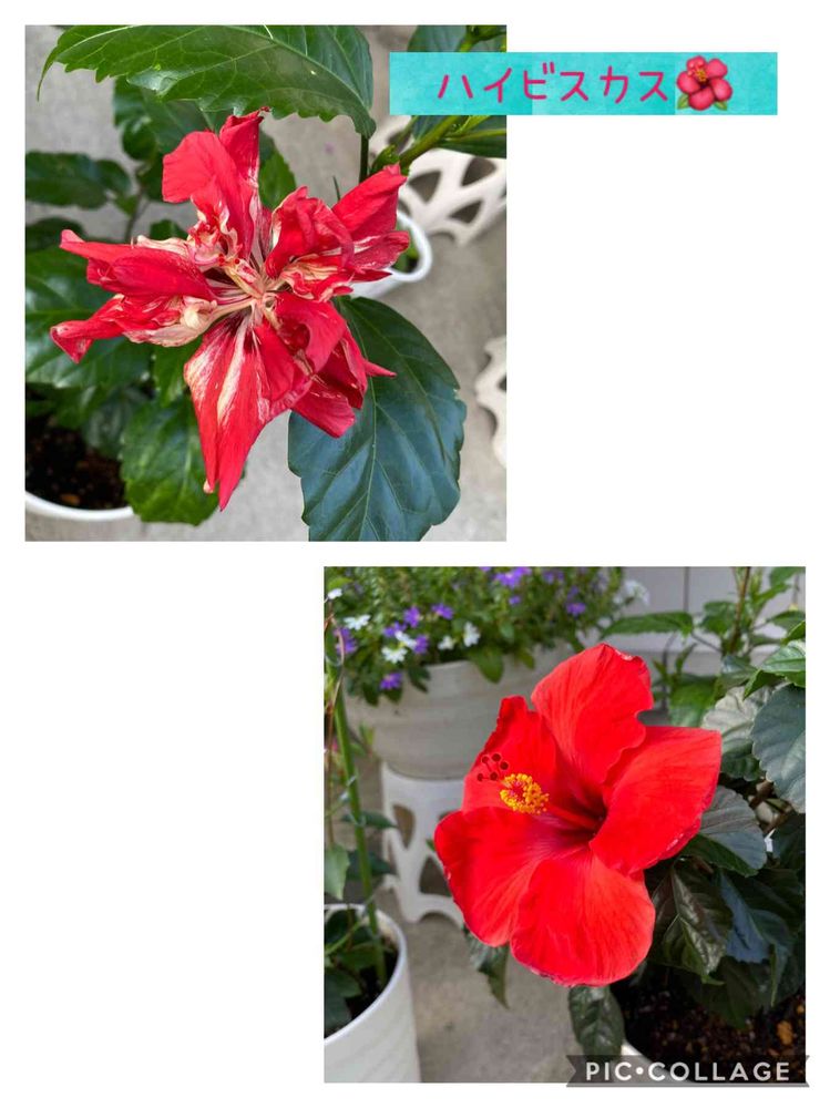 ハワイアンフラッグという名前のハイビスカス🌺です🌺🌺🌺