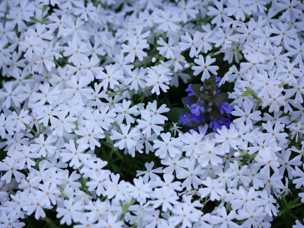 白いシバザクラの中にキランソウが一輪だけ咲いていました💠