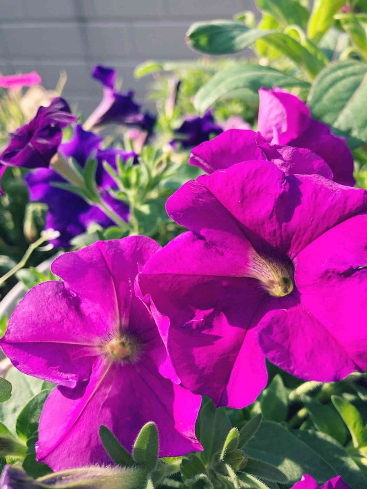 ノーブランド、98円ペチュニアはひょろひょろとしながらも成長し続け、切り戻しを経て、元気に開花中💜💗