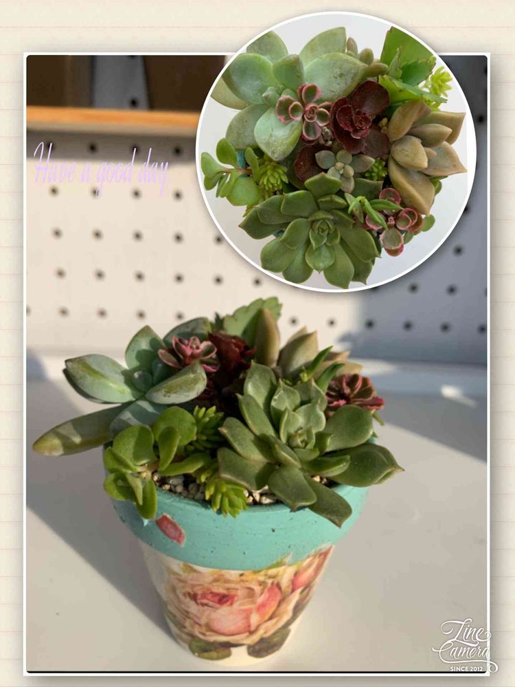 デコパージュをするにあたり、職場のパートさんに素敵✨な紙ナプキンをたくさん頂いたので、お礼に寄植えのプレゼント🎁