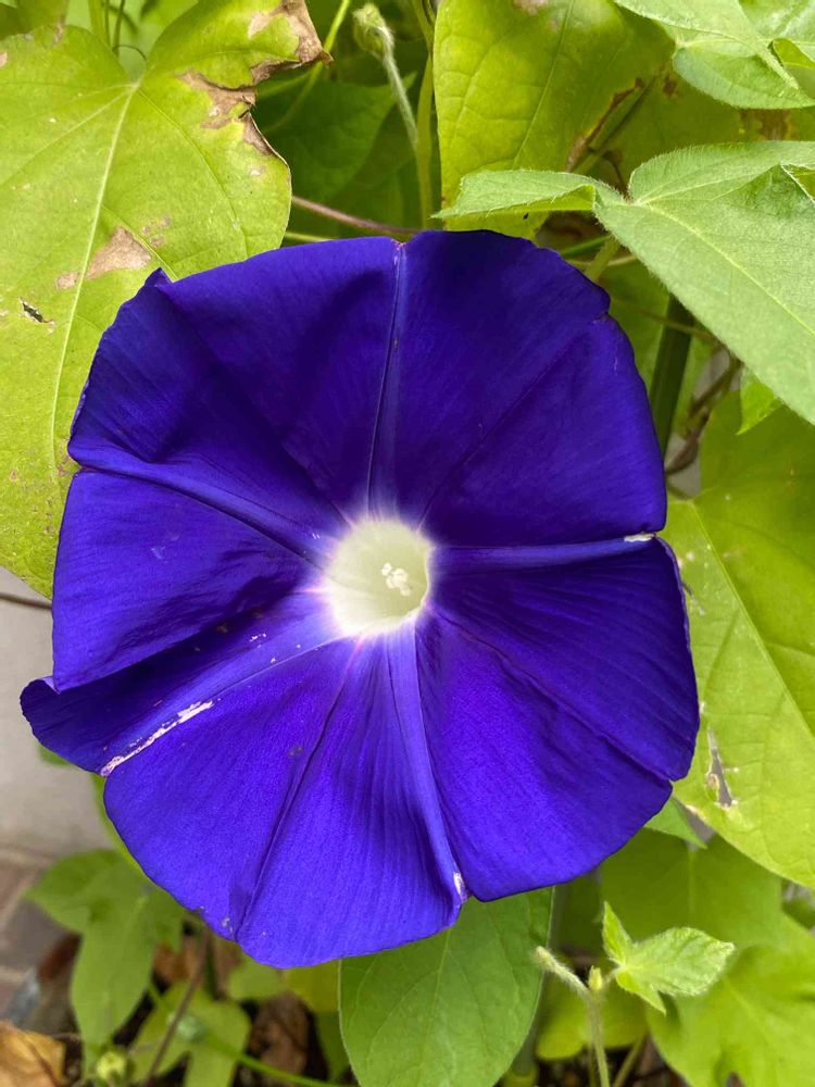 小学一年生が夏休み恒例のアサガオの鉢にこんな素敵なお花が咲きましたヽ(´▽`)/