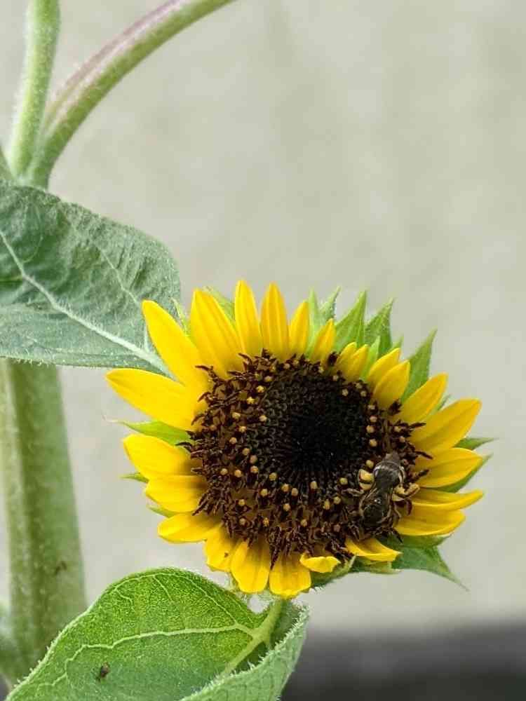 ミニミニの脇芽の花にミツバチさんが来ておりました。