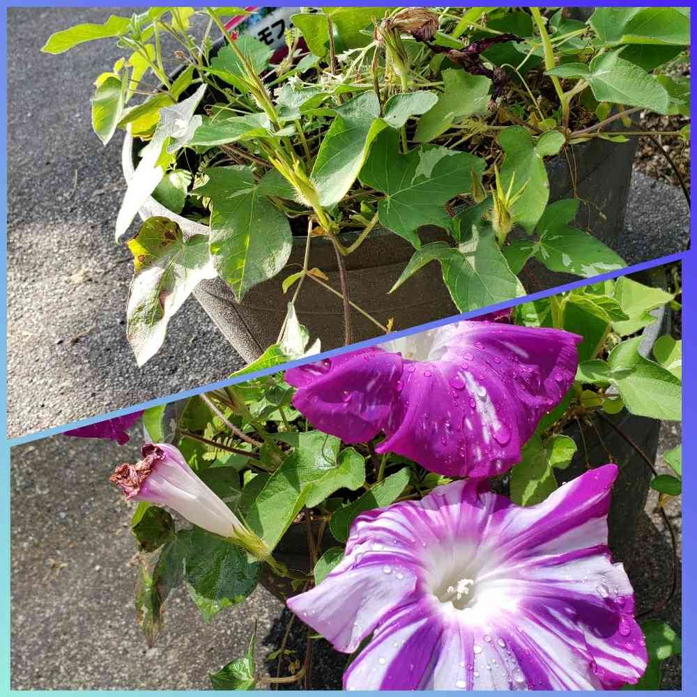 違う鉢から出てきて、スゴイ存在感⁉️このアサガオも、本当は、今年初挑戦のネモフィラがちょこっと咲いていたのです(笑)💧