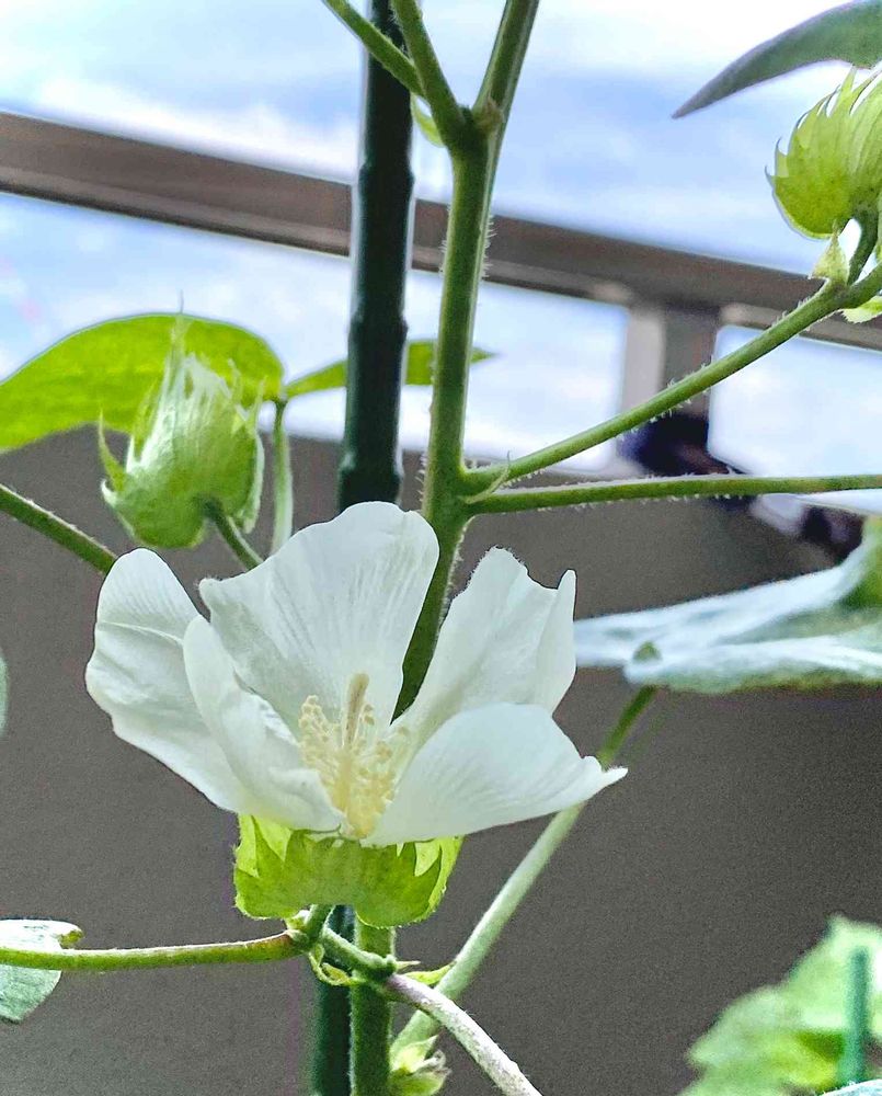 やっと咲いた❣️コットンの花