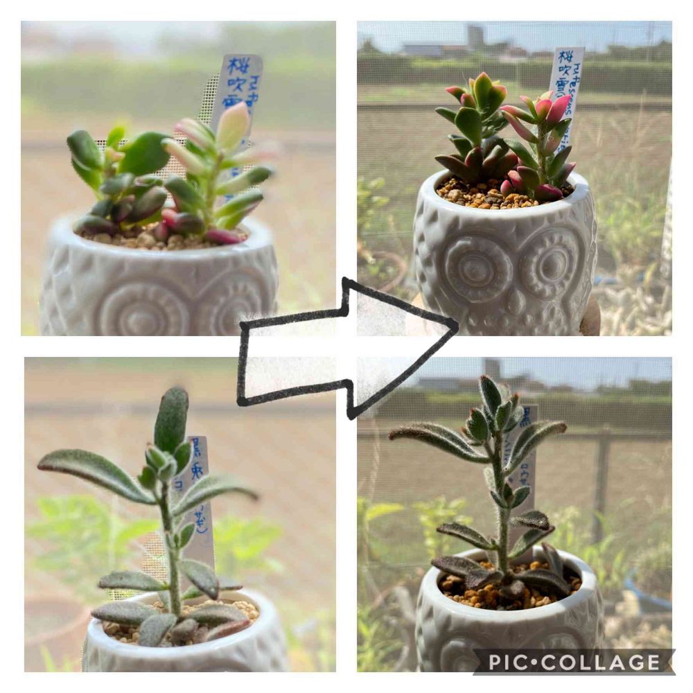 桜吹雪🌸 外に近い奥の方の葉数が増えてるし、より赤くなってる👀💕太陽好きなのね🌞