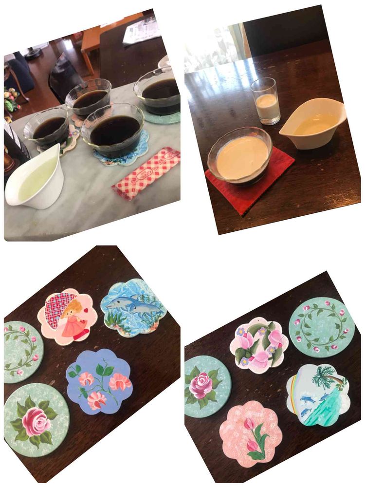 可愛い💕綺麗な、コースターですね。私は、ダイソーの、クローバー🍀と、プーさんの、フェルトみたいな生地のをつかってます😅