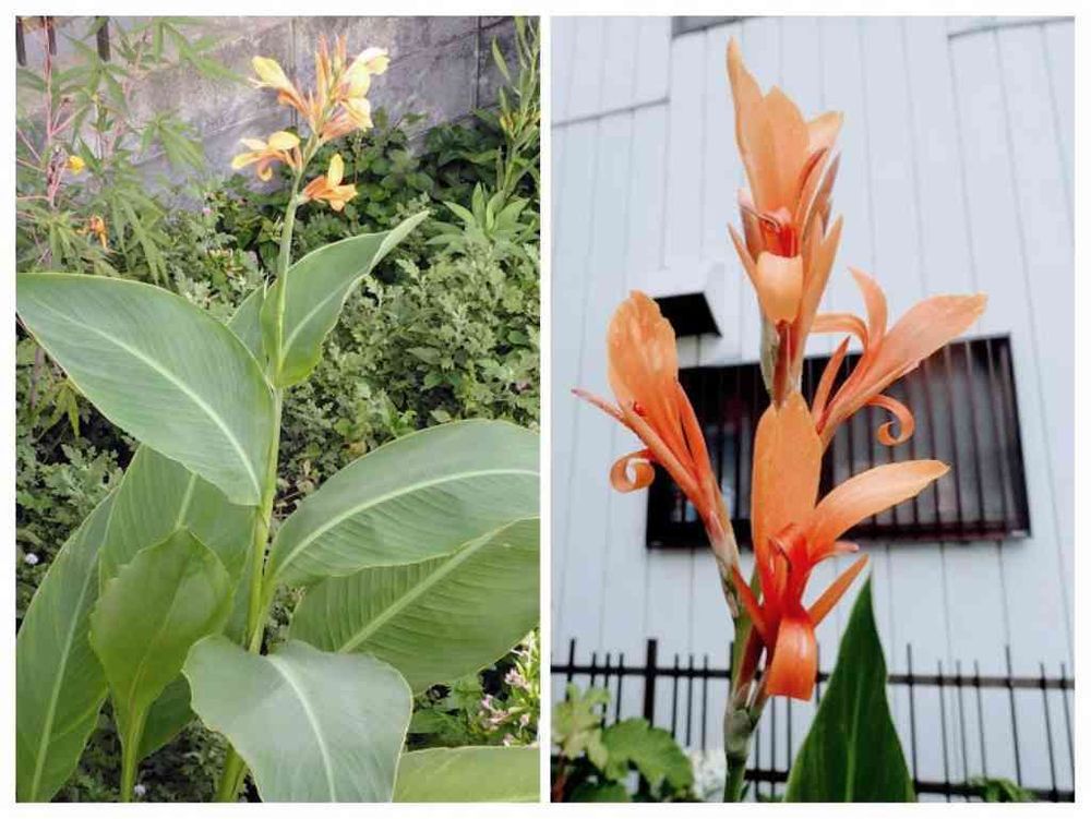 今日のお花、カンナです。カンナ・シュッツトガルドって、ご存知ですか?ご存じない方は検索してみてください、それはそれはきれいな斑入り葉のカンナの画像が沢山ヒットするはずです😊昔から憧れていたその品種を数年前に通販でゲットして、わくわくしながら発芽を待っていました。出てきた葉っぱは、普通の緑で、えっ?でもひょっとしたらそのうち斑入りの葉が出るかなー?と、待ってみたけれどずーっと緑。来年は出るかなー?と、待ってみたけれどもう、何年待っても緑しか出ず、これはもう斑入り葉あるあるで、緑になってしまった株はほぼ永遠に緑のままのことが多いんですよね😢せめて初年度だけでも斑入り葉を見せてくれよー😠と思いつつ。。。。なにしろこの品種、葉がきれいなのだけが特長で、お花は原種そのままの細い花弁のワイルドな姿なんです💦それでも処分するのは忍びなく、原種のダンドクだと思えば、むしろ珍しいじゃん、みたいに何事もポジティブシンキングで、育てていますヾ(≧∇≦)ノ