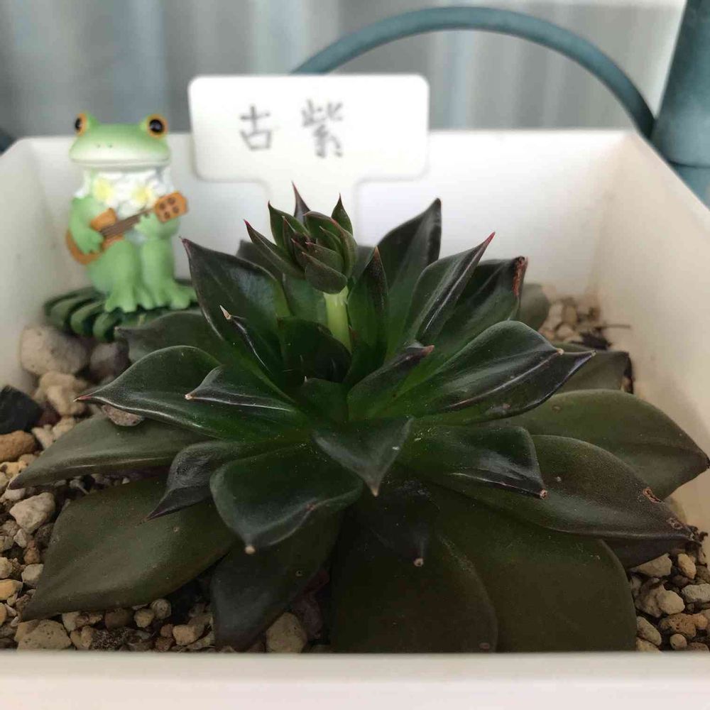 古紫(こむらさき)、黒玉子(くろたまご)、ブラックプリンス、アフィニスと沢山の名前のあるこの子は、花芽を付けました❣️こんな暑い時期だったかな〜❓
