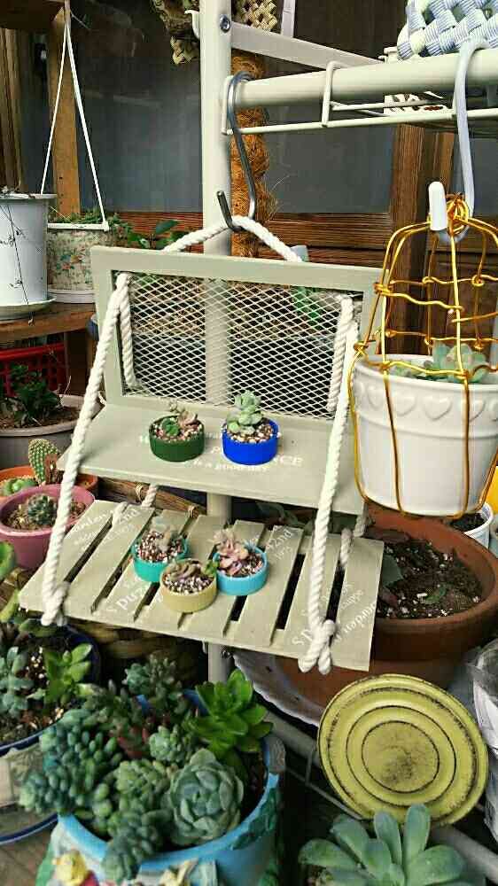 お庭にマッチしていて、多肉ちゃんもたくさん飾れそうだし、網もいいですね。ディスプレイに凝っちゃいそう😆💕