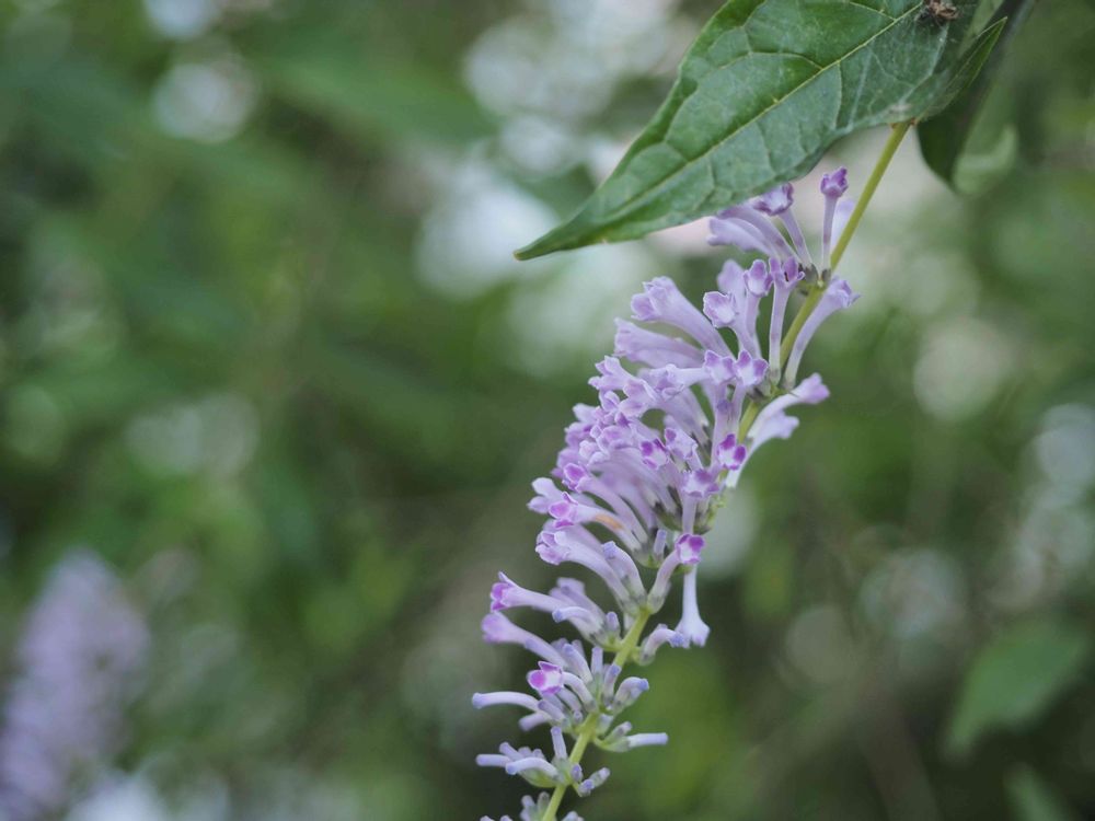 細くて青い小さな花を、一本の花茎に沢山つけて下がっています。