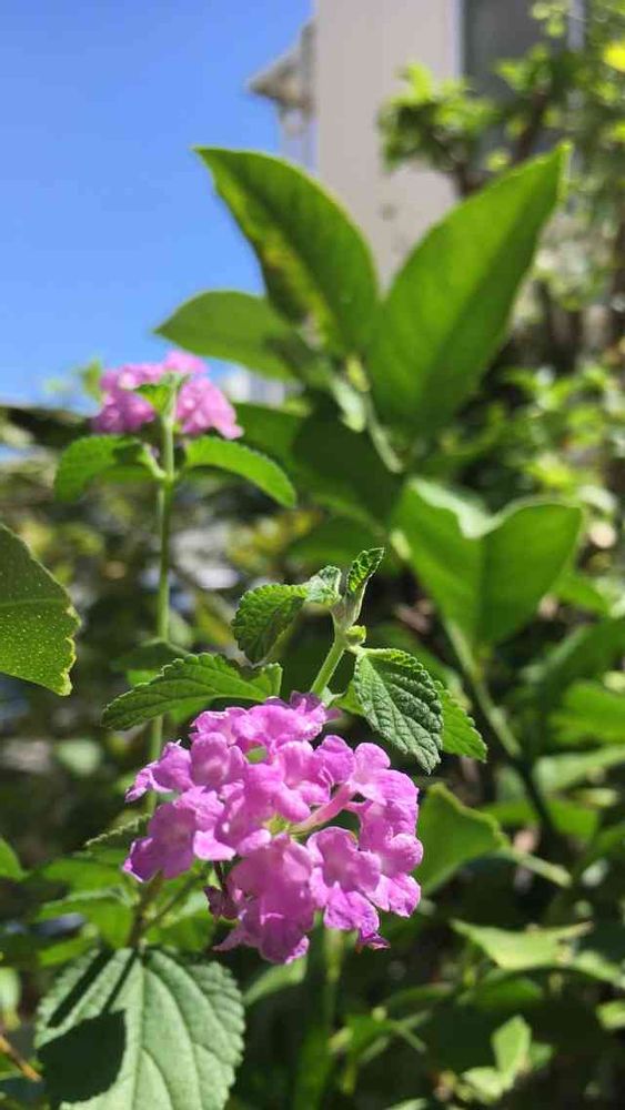 紫のランタナさんが、青空の下で元気に咲いています^_^♡♡♡