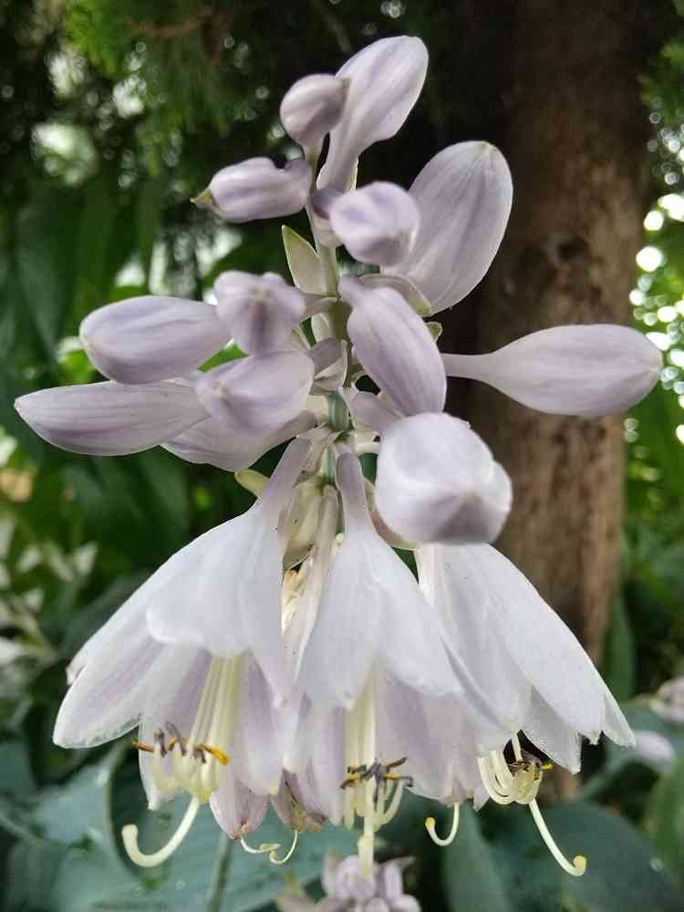 ホスタハルシオン咲いてます✨少しでも涼しく感じられそうなお花を選びました。スカートが風に揺れて(#^.^#)