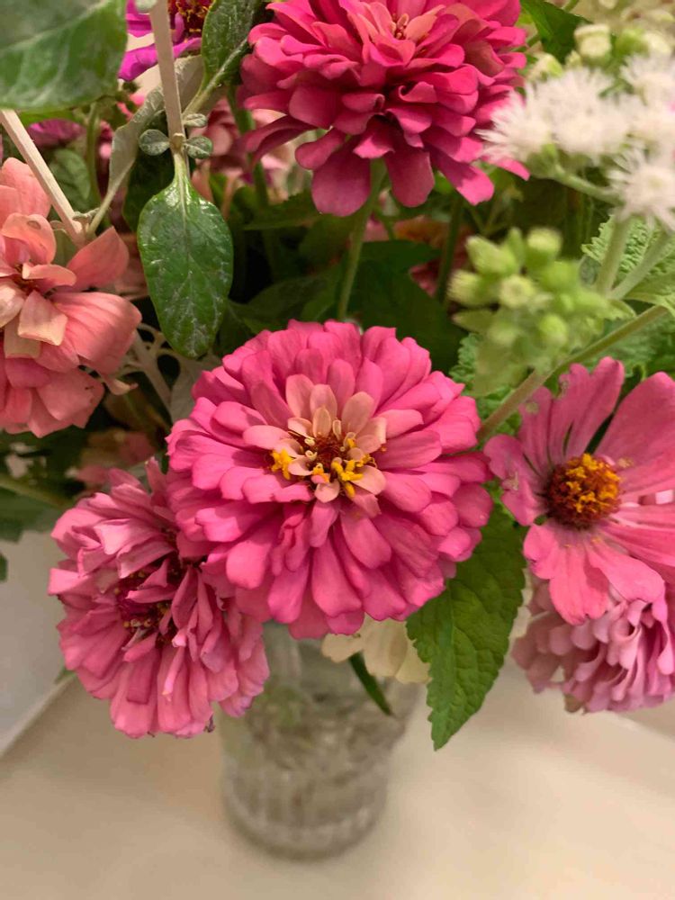 ジニアって1輪だけでも存在感があるのに、沢山飾ると豪華ですね💐