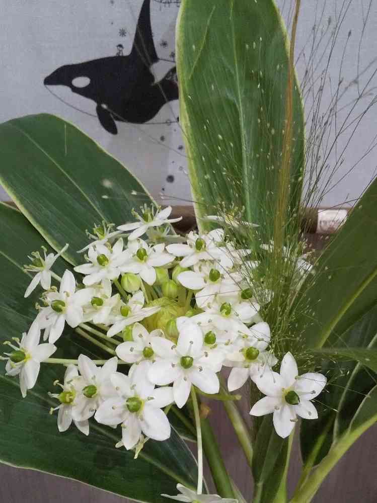 モンステラが限界だったので、先週のオーニソガラムにスモークグラスとドラセナを合わせました。