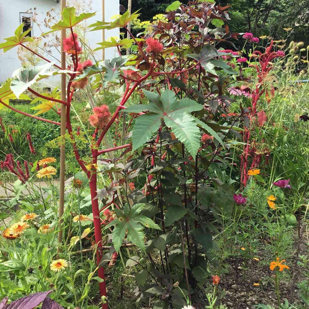 秋に向けてヒマ(トウゴマ)が大きくなってきました。よーしよし。