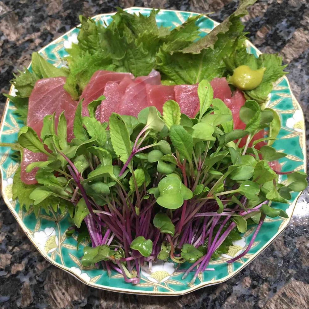青紫蘇、ルビーカイワレ大根と、キハダ鮪。