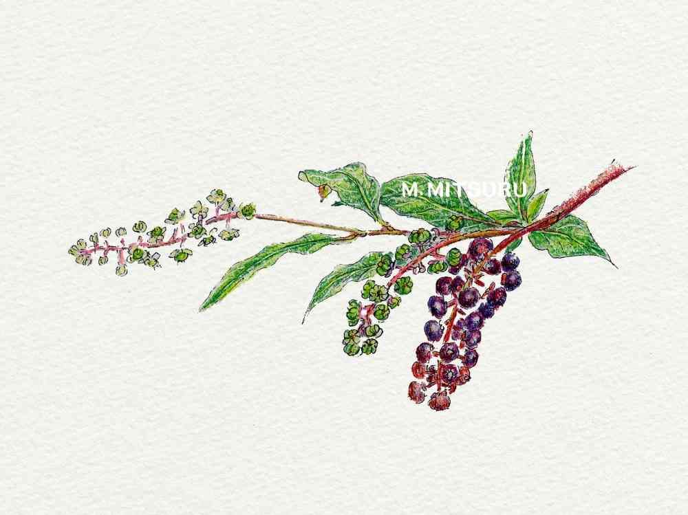 ヨウシュヤマゴボウは、有毒植物で、独特の怪しい感じがありますが、その毒を取り除き 美しい部分だけを上手く 描かれているように思います。