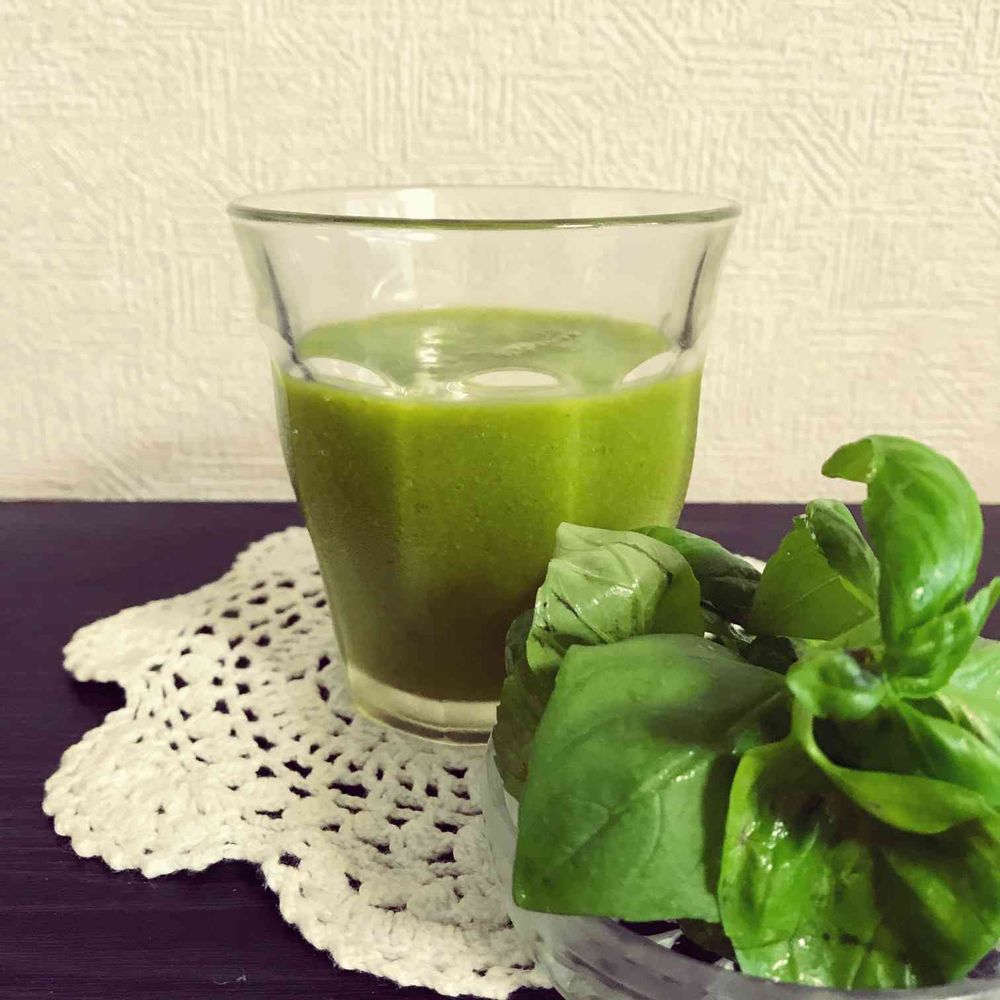 バジルとマンゴーのスムージー。今朝のあさイチで紹介されていたので早速作ってみました。うん!美味しい✨明日からの猛暑に勝つには効果的かな♫