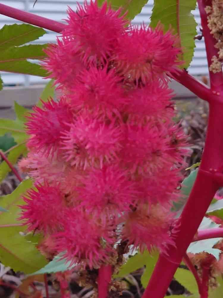 トウゴマ,❤️可愛い,丸いピンクの実がビッシリの投稿画像