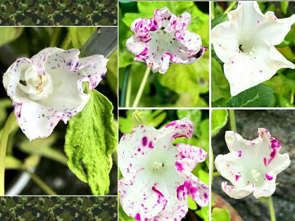 朝顔 1095黄縮緬立田葉白筒台咲青吹掛斑点
