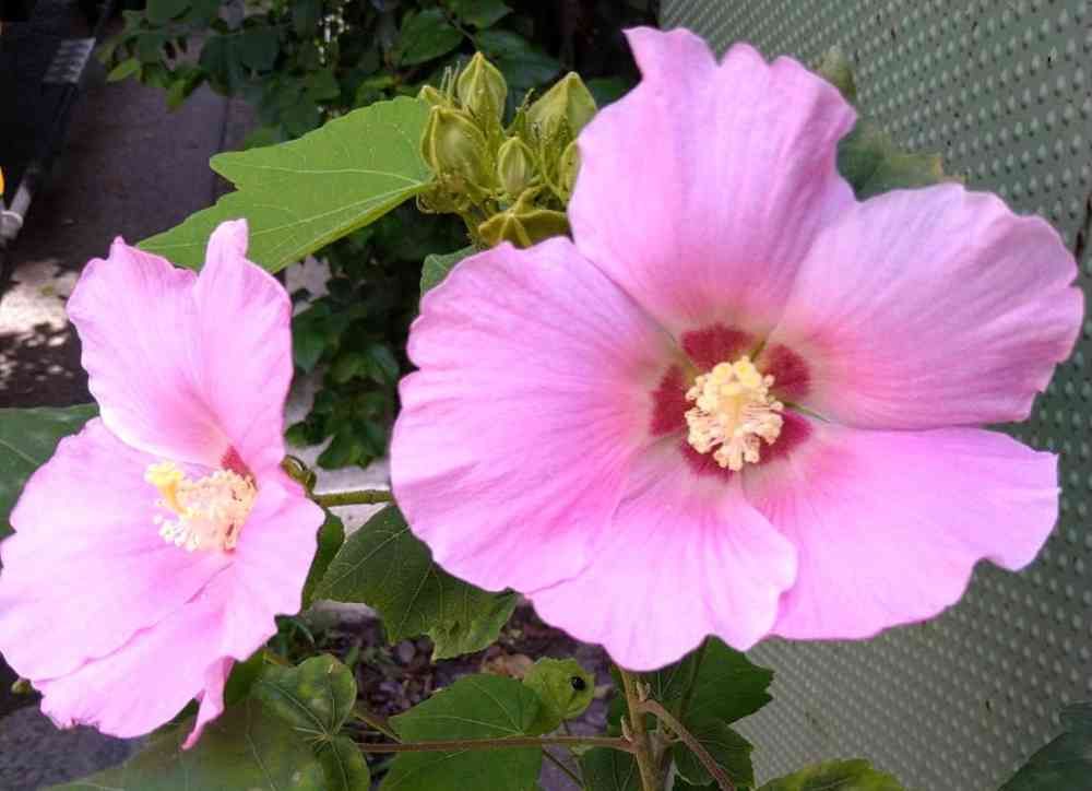 ピンクの芙蓉の花、二つ並んでとても綺麗です✨✨