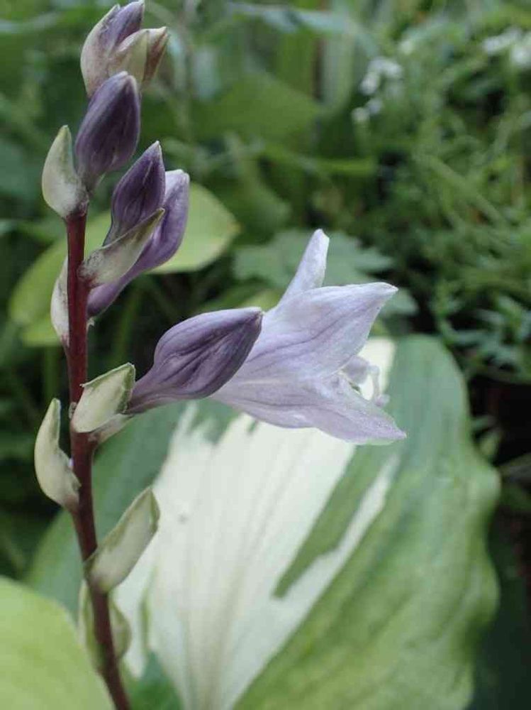 ホスタ・ラズベリーサンデーです。赤紫の茎が名前の由来です。ライラックブルーのお花もきれいですが、香りが無いのが残念です😊