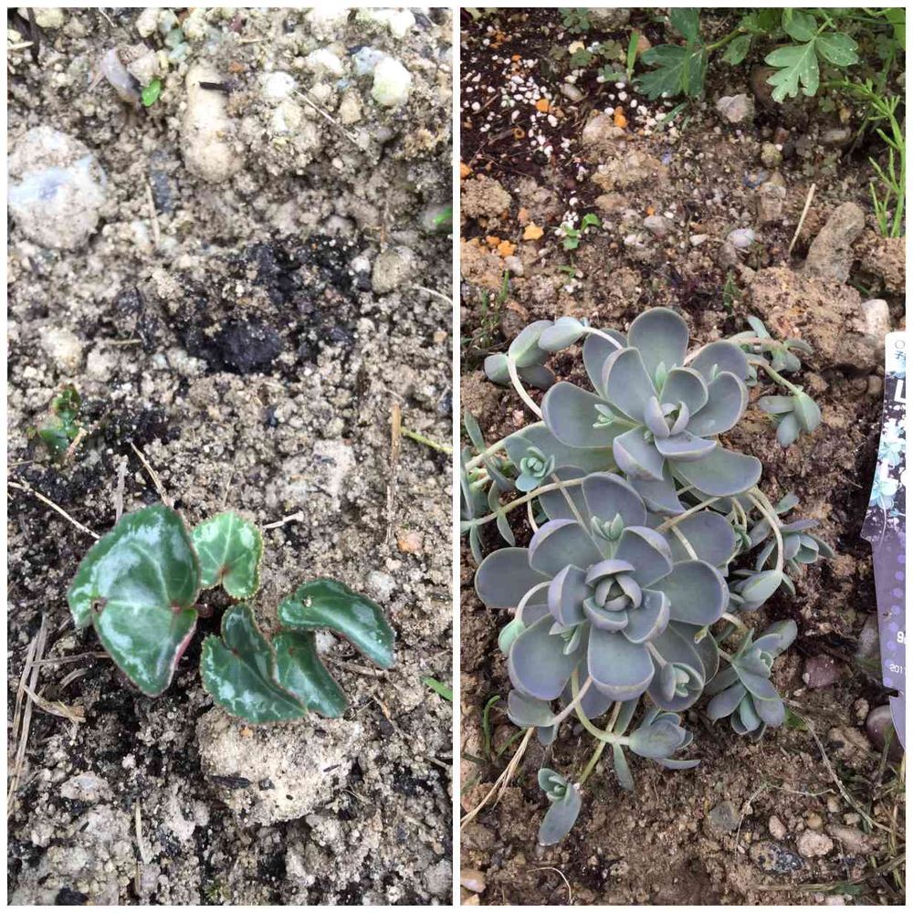 小さな庭,子持ち蓮華,ガーデンシクラメンの葉っぱの投稿画像